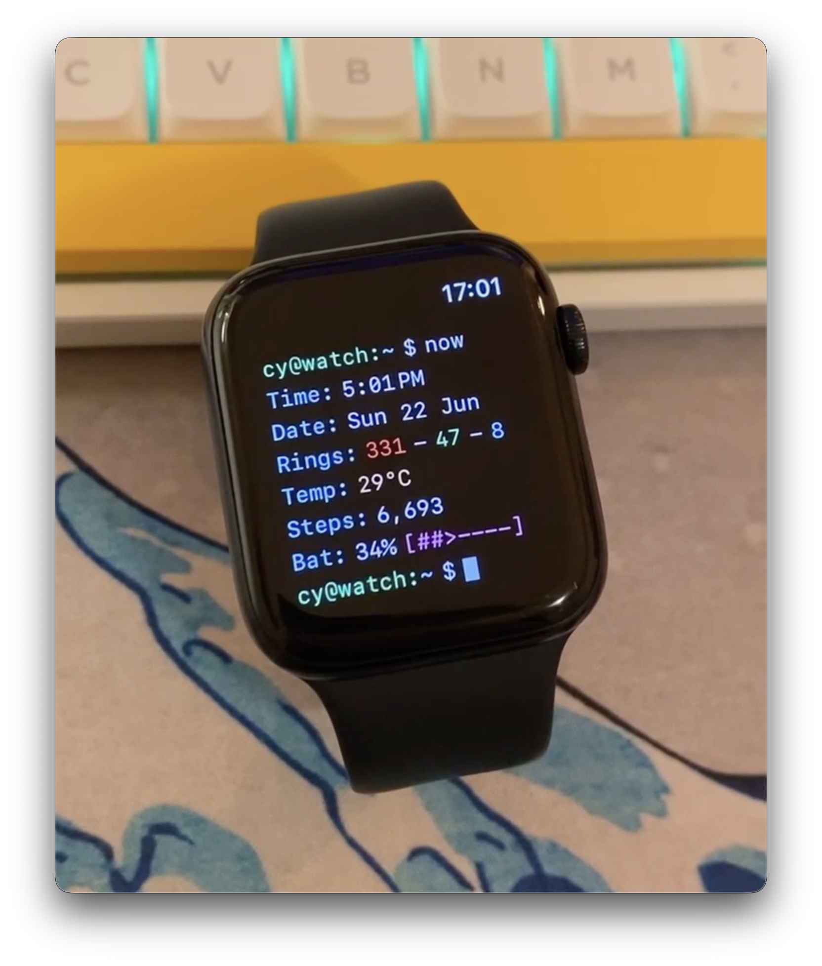 I decided to go with an app because I wanted to be able to put whatever I wanted on the screen. My goal was to take inspiration from kuglee/TermiWatch ->, but make it look a bit more like the output a "minimal" fetch/fastfetch.